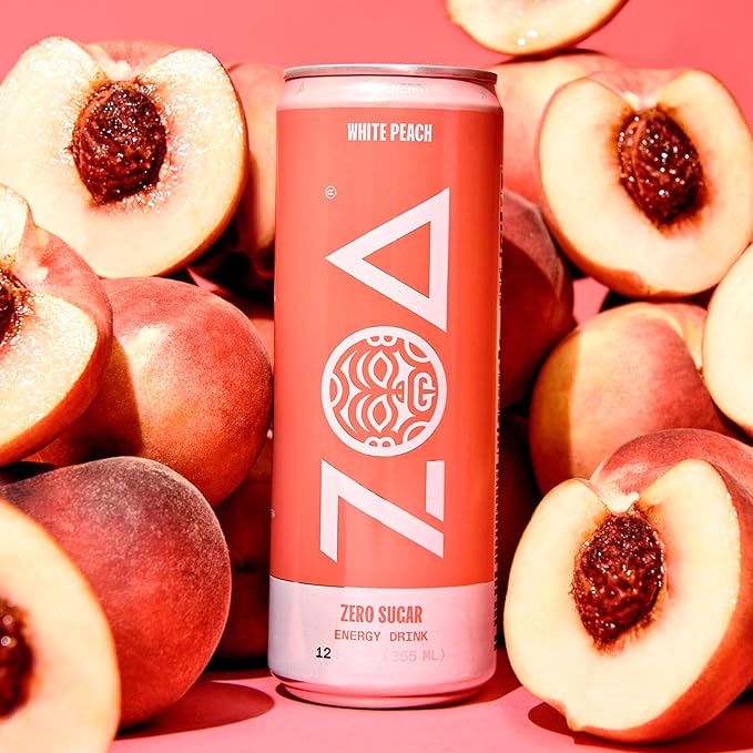 ZOA Zero Sugar Energy Drinks, White Peach - Sugar Free with Electrolytes, Healthy Vitamin C, Amino Acids, Essential B-Vitamins, and Caffeine from Green Tea - 12 Fl Oz (12-Pack)