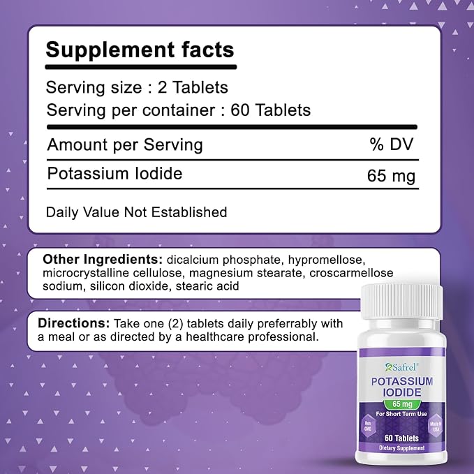 - High Purity & Safety – Made with USP-grade Potassium Iodide crystals, this product is free from artificial additives, gluten-free, Non-GMO, kosher certified, and manufactured in the USA in a GMP-compliant facility.