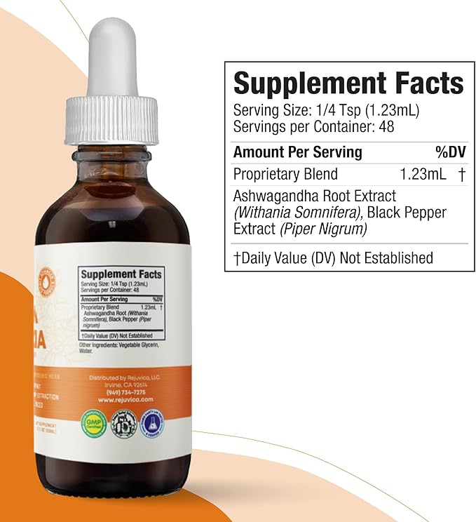 Rejuvica Health Active Ashwagandha - Advanced Liquid Supplement - Withania Somnifera Extract - Ashwagandha Roots Only - Naturally Occurring Withanolides