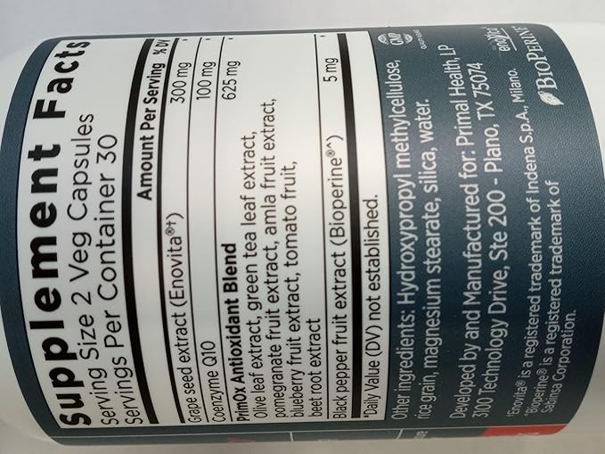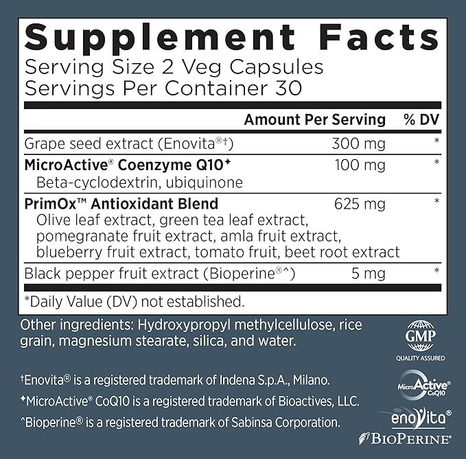 - Support Your Cardiovascular Health: With a dynamic blend of Coenzyme Q10, Grape Seed Extract, Bioperine, and PrimOx blend of olive leaf, green tea, pomegranate, beet, and other fruits, this supplement helps support nitric oxide levels, promoting healthy blood flow.
