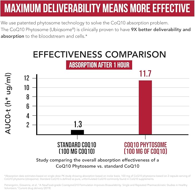 - 9X HIGHER ABSORPTION THAN STANDARD CoQ10: SoActive CoQ10 leverages phytosome technology and was shown to have a 9x (900%) higher bioavailability in comparison to standard CoQ10.*