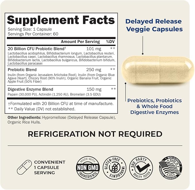 - Purity tested & allergen free: Each and every batch of these prebiotic + probiotic capsules are third party tested to guarantee high purity, potency, and premium quality. This supplement has been manufactured without gmos, soy, gluten, wheat, tree nuts, peanuts, or sugar. They also don't include preservatives or artificial colorants