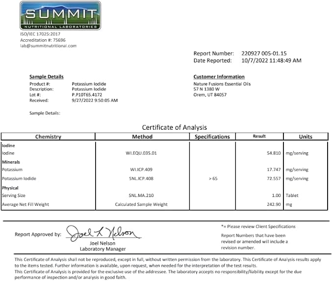 - Pure - Our potassium iodide tablets use USP grade Potassium iodide crystals directly from the source. We offer 3rd party lab tests that test for heavy metals, potency, purity, and much more.