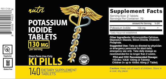 Nature's Fusions Potassium Iodide Tablets 130 mg (140 Tablets) EXP 10/2032 - Ki Pill - YODO Naciente