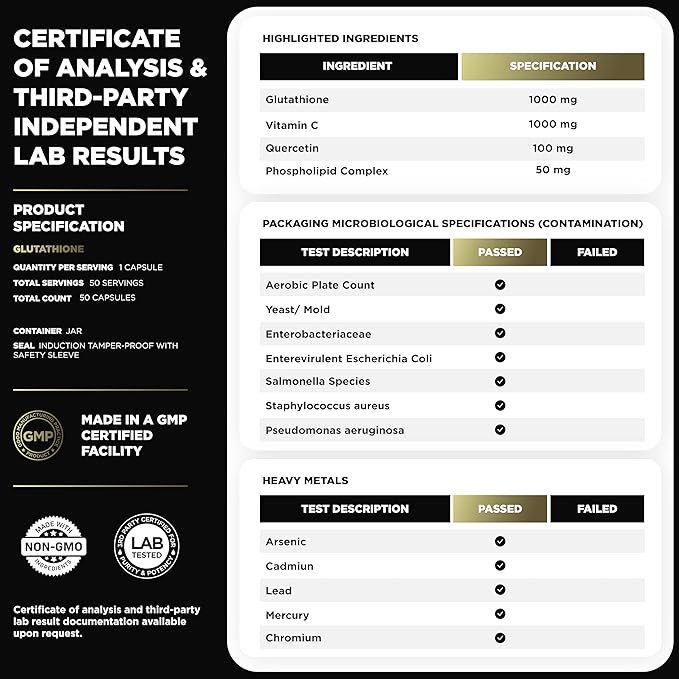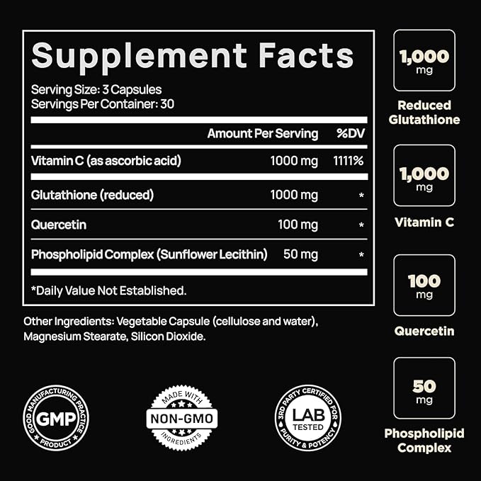 - Special Ingredients : L-Glutathione Reduced, Vitamin C, Quercetin, Phospholipids