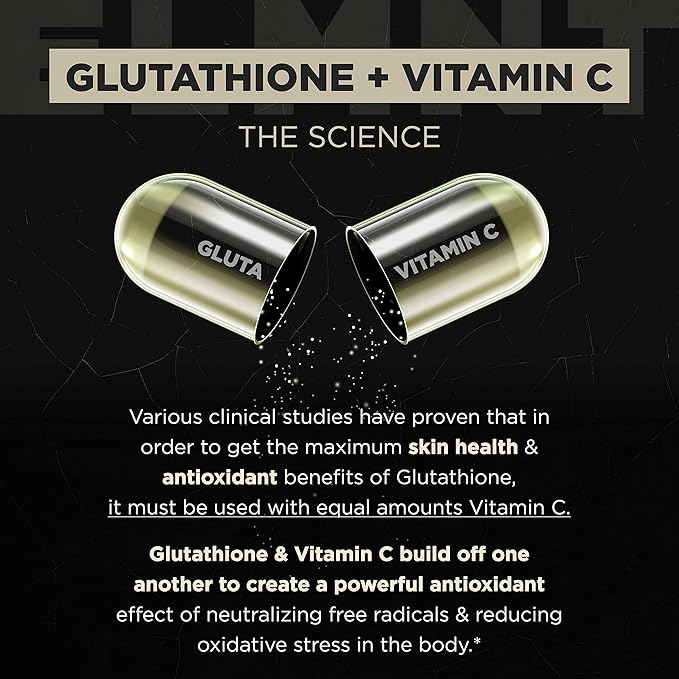 - ๐ฆ๐จ๐ฃ๐๐ฅ ๐๐๐จ๐ง๐๐ง๐๐๐ข๐ก๐ ๐ง๐ฅ๐๐ฃ๐๐ ๐๐๐ง๐๐ข๐ก ๐๐ข๐ฅ๐ ๐จ๐๐. Studies have shown when taken with equal amounts of Vitamin C, the efficacy of L-Glutathione supplementation is amplified tremendously, which is why ELMNT Super L Glutathione capsules contain a powerful 2000mg formula of Glutathione 1000mg + Vitamin C 1000mg to achieve optimal results, plus enhanced with Quercetin and phospholipid liposomal layer.*