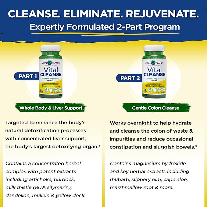 Vital Planet - Vital Cleanse with Milk Thistle, Magnesium, Cape Aloe and Herbs, Natural Supplement for Occasional Constipation and Healthy Elimination, 2-Part - 14 Day Kit, 56 Capsules