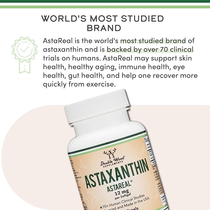 - WORLD'S MOST STUDIED BRAND: AstaReal is the world's most studied brand of astaxanthin and is backed by over 70 clinical trials on humans. AstaReal may support skin health, healthy aging, immune health, eye health, gut health, and help one recover more quickly from exercise
