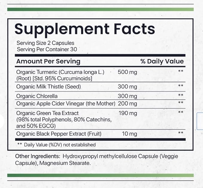 - A Whole-Body Reset in a Capsule – This is more than just a turmeric supplement. It's a curated blend of botanicals, including apple cider vinegar, green tea, and milk thistle, formulated to support your body’s natural detox rhythm.