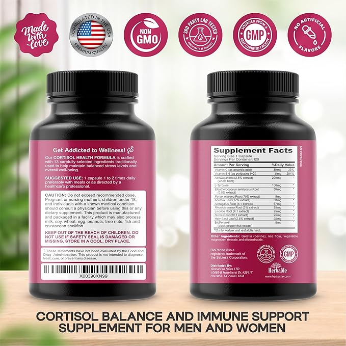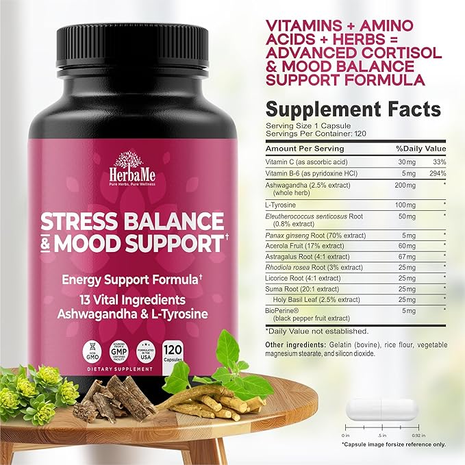 Cortisol Manager Supplement and Balance Mood with Ashwagandha & L-Tyrosine, 120 Capsules, Helps Maintain Healthy Energy Levels and Stress Relief, Fatigue Reducer Pills