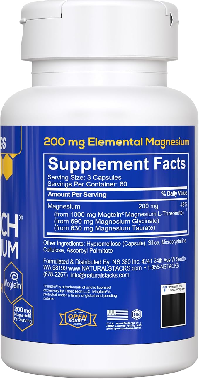 - 🤝 From a trusted, Open-Source Company: At Natural Stacks, we focus on full label disclosure, 3rd party lab testing, ingredient traceability, and purity. Generic supplements simply can’t compare to this open-source promise. Natural Stacks created MagTech to function as the premier magnesium supplement available anywhere.