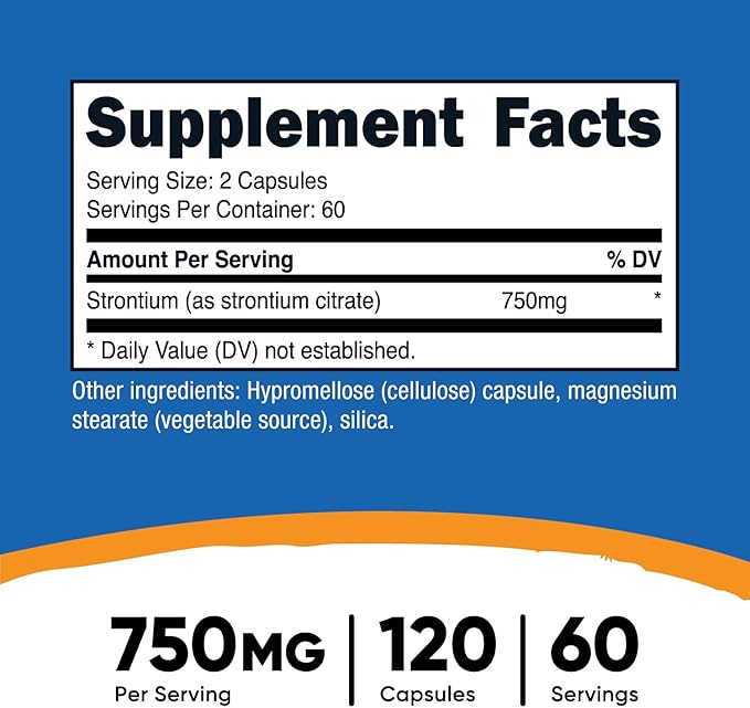 - 375 mg Strontium Per Capsule, 750 mg Strontium Per Serving (1 Serving is 2 Capsules)