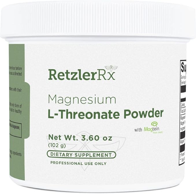 RetzlerRx Magnesium L-Threonate Powder with Magtein® - Brain-Supporting Magnesium Threonate Complex - Unflavored, Gluten-Free Supplement for Cognitive Health - 60 Servings