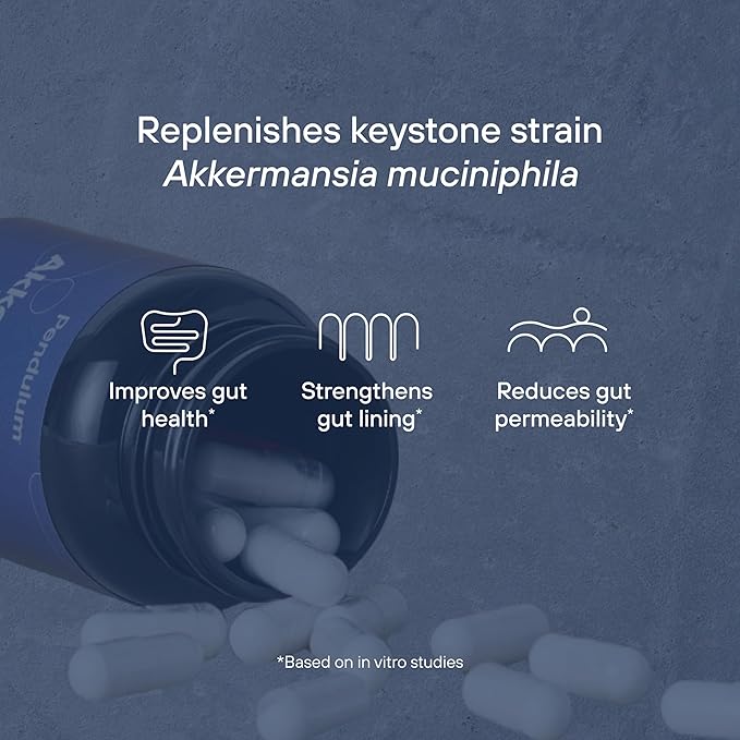 - Replenish your gut’s Akkermansia levels – Modern life disrupts your gut and as you age, Akkermansia levels deplete by up to 90%. Pendulum Akkermansia helps restore your levels, strengthens your barrier (gut lining), reduces gut permeability, and improves digestive health (better regularity, helps relieve occasional constipation, diarrhea and gastrointestinal upset) and improves your metabolic health.*