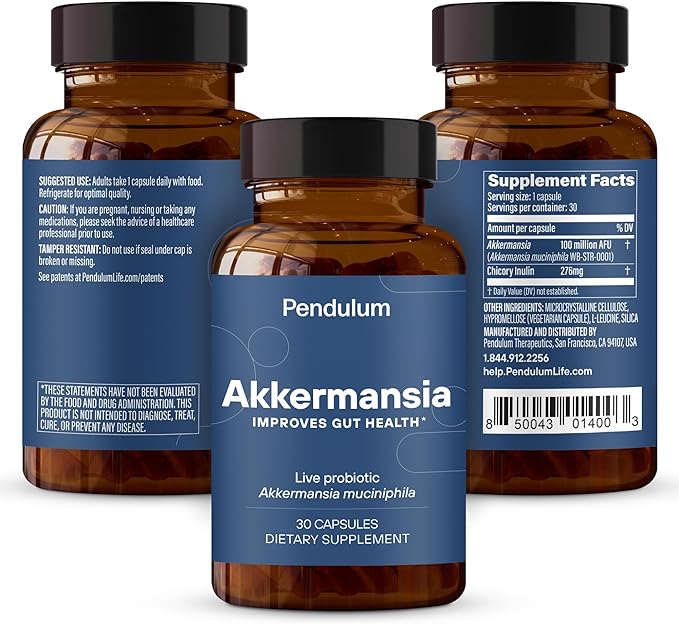 - Live-strain, anaerobic Akkermansia muciniphila – Pendulum is the first company to grow, stabilize and deliver the live anaerobic strain Akkermansia muciniphila to the market. When it comes to gut health and metabolism, anaerobic strains are some of the most potent. Pendulum Akkermansia is made with a zero-oxygen formulation and encapsulation in order for the strains to arrive (alive) to your colon to deliver full benefits to your gut microbiome and overall gastrointestinal system.
