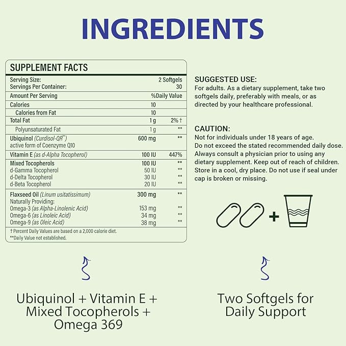 CoQ10 600mg Softgels | High Absorption CoQ10 Ubiquinol Supplement | Reduced Form Enhanced with Vitamin E & Omega 3 6 9 | Antioxidant Powerhouse Good for Health| 60 Softg