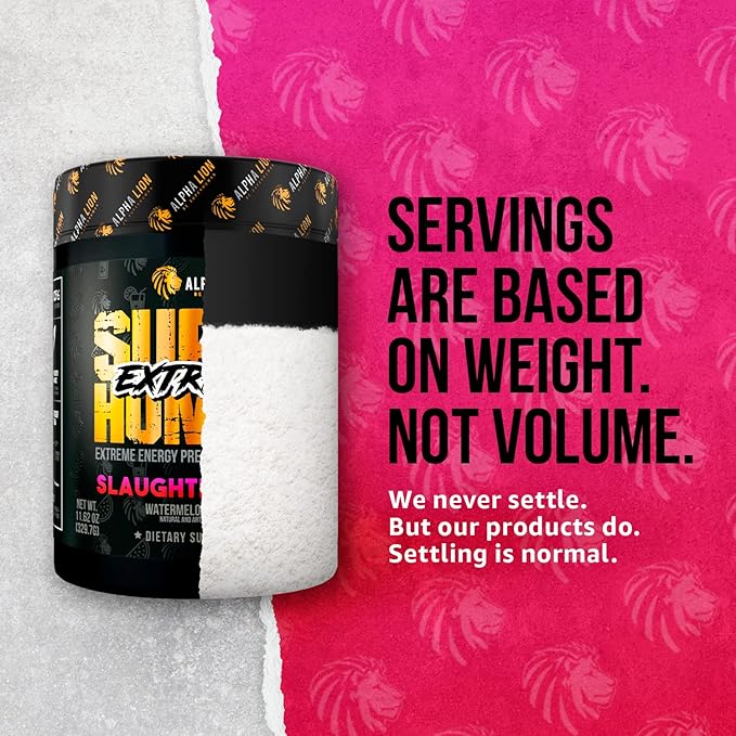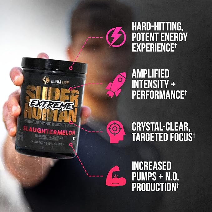 ALPHA LION Superhuman Extreme High Stim Pre Workout Powder, Beta Alanine, L-Taurine & 356mg Tri-Source Caffeine for Sustained Energy, Nitric Oxide & Citrulline for Pump (21 Servings, Slaughtermelon)