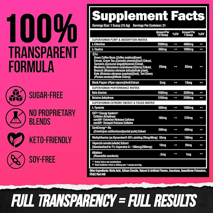 - GREAT TASTING CAFFEINE MATRIX: Our Extreme Workout Supplement provides increased total caffeine content powered by our all new SXT Sustained Energy and Focus System. This tri-source caffeine matrix will provide you with more sustained energy and focus vs the standard forms of caffeine used in other dietary supplements. Our Grapezilla Supplement will be like enjoying a delicious, top-shelf cocktail drink from a professional mixologist vs taking nasty shots of clearance bin vodka.
