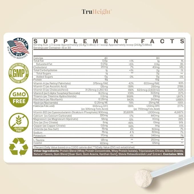- TRUHEIGHT'S WHEY PROTEIN SHAKE FOR CHILDREN & TEENS: TruHeight's delicious protein powder contains a responsibly sourced collection of 18 vitamins and minerals, including 16.5g of protein, Calcium, Magnesium, and Vitamin D, supporting in growth and development. With less than half the sugar of conventional kids products, it’s also the perfect snack for picky eaters!* TruHeight is the #1 Pediatrician Recommended Brand for Growth & Development. *IQVIA ProVoice Survey, March 2025.