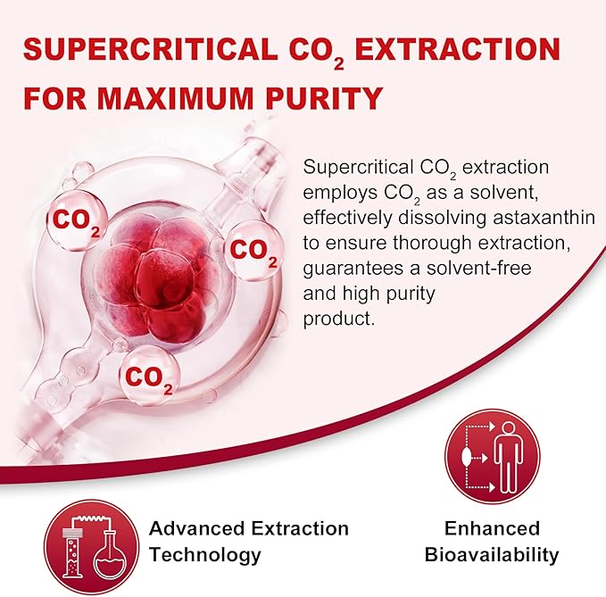 - Eye Protection: Pure Astaxanthin enriched with grape seed oil extract has a positive effect on visual activity and depth perception, relieves eye fatigue and provides a protective layer for your eyes. Our extra-strength astaxanthin adds convenience to your daily health needs in 1 softgel per day.