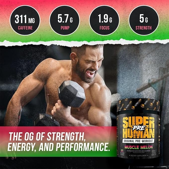 ALPHA LION Superhuman Pre Workout Powder, Beta Alanine, L-Taurine & Tri-Source Caffeine for Sustained Energy & Focus, Nitric Oxide & Citrulline for Pump (21 Servings, Muscle Melon)
