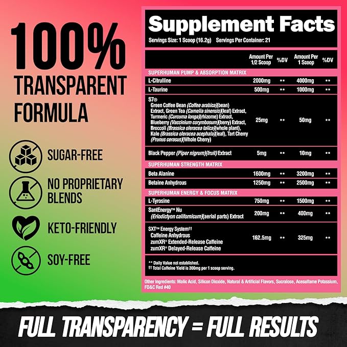 - IMPORTANT DISCLAIMER: We have updated our serving sizes for our Superhuman pre-workout powder from 42 to 21. You are still receiving the same amount for your motivation juice, just with a bigger scoop!