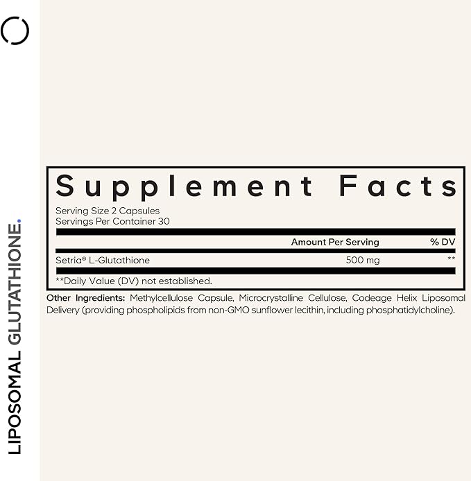 - High-Potency Setria L-Glutathione: Codeage Liposomal Glutathione supplement delivers 500 mg of patented Setria L-Glutathione per serving, providing a substantial dose in each capsule. This 2-Pack offers two bottles of Codeage Liposomal Glutathione.