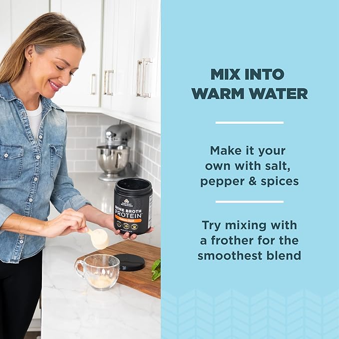 - SAVORY & EASY TO USE - Mix one scoop in 6 or 8oz of hot water & sip. Warm broth has been a staple for generations to support overall satiety, provide gut support and help you stay full – so we’ve created a line of three soup-inspired flavors designed to be added to just water, and consumed warm.