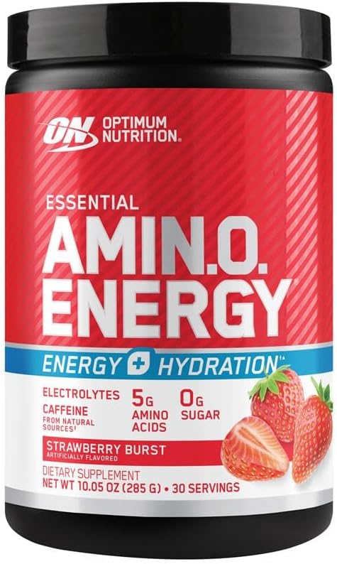 Optimum Nutrition Amino Energy Powder Plus Hydration, with BCAA, Electrolytes, and Caffeine, Strawberry Burst, 30 Servings (Packaging May Vary)