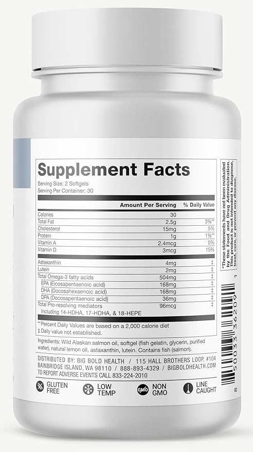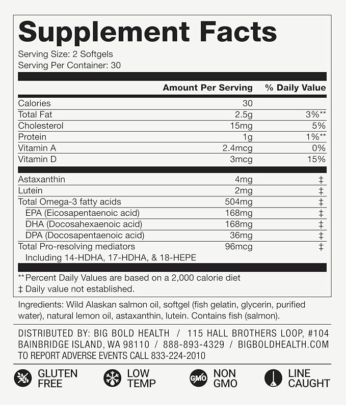 Skin & Eye Health | Wild Alaskan Salmon Oil with Astaxanthin | Lutein | Pro-Resolving Mediators | Vitamins A&D | Gluten-Free | 60 Softgels