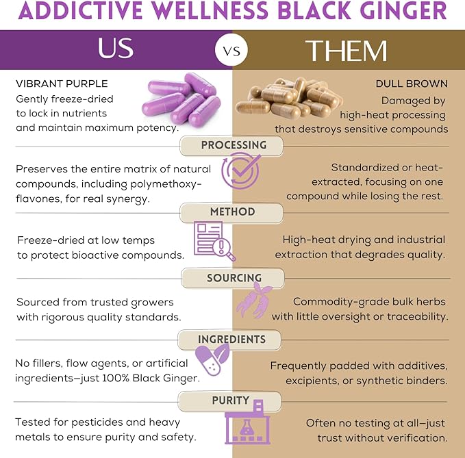- Premium Quality: pure & potent thai black ginger capsules - made without mechanical grinding to preserve cellular structure, making it the perfect black ginger extract for men