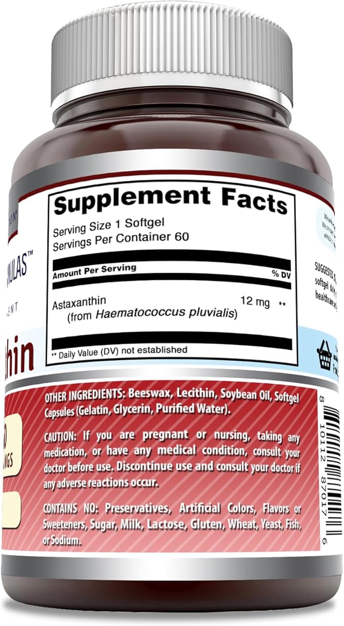 Amazing Formulas Astaxanthin 12 Mg Supplement | 60 Softgels | Non-GMO | Gluten Free | Made in USA