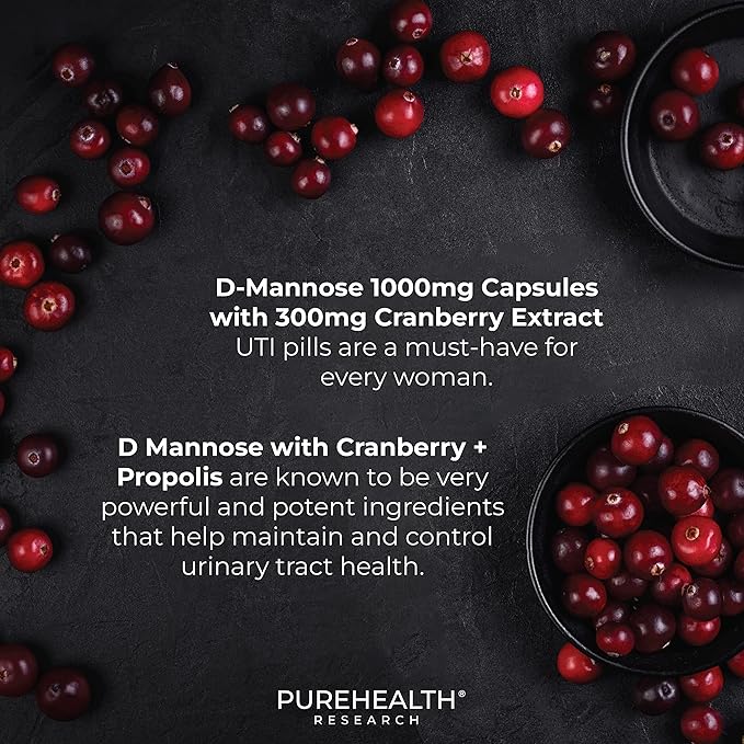 - D Mannose with Cranberry + Propolis and other ingredients are known to be very powerful and potent ingredients. D-Mannose 1000mg Capsules with 300mg Cranberry Extract help to maintain and control urinary tract health for women. It`s not uncommon that it happens for men as well, but for woman – these uti pills are a must-have.