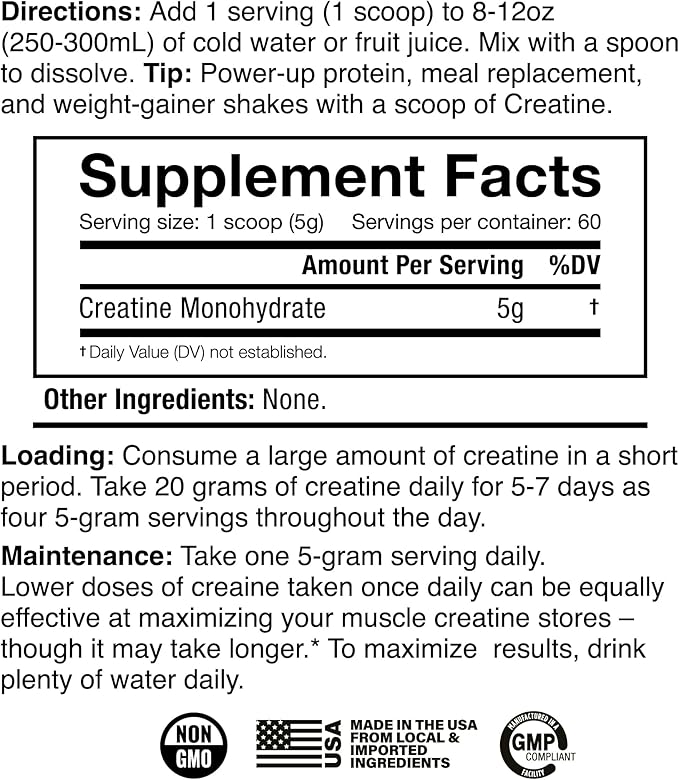 - Pure Micronized Creatine Monohydrate – Made in a GMP compliant facility and third-party tested. Unflavored: No fillers or artificial colors, flavors or additives