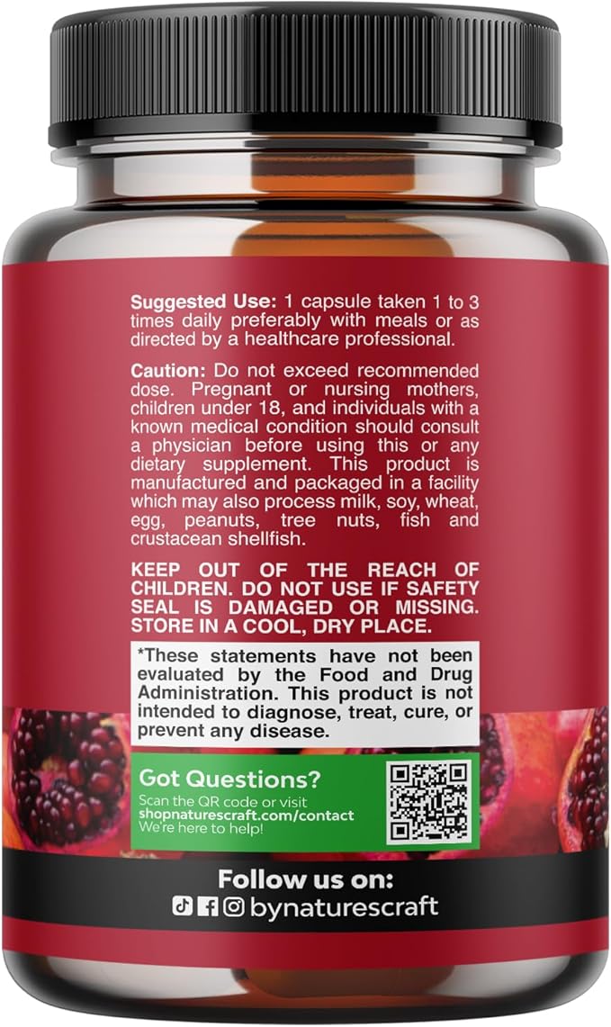 - Quality Assurance - Natures Craft is a trusted name in herbal supplements and we invite you to try our pomegranate supplement made with real fruit that offers countless benefits from head to toe