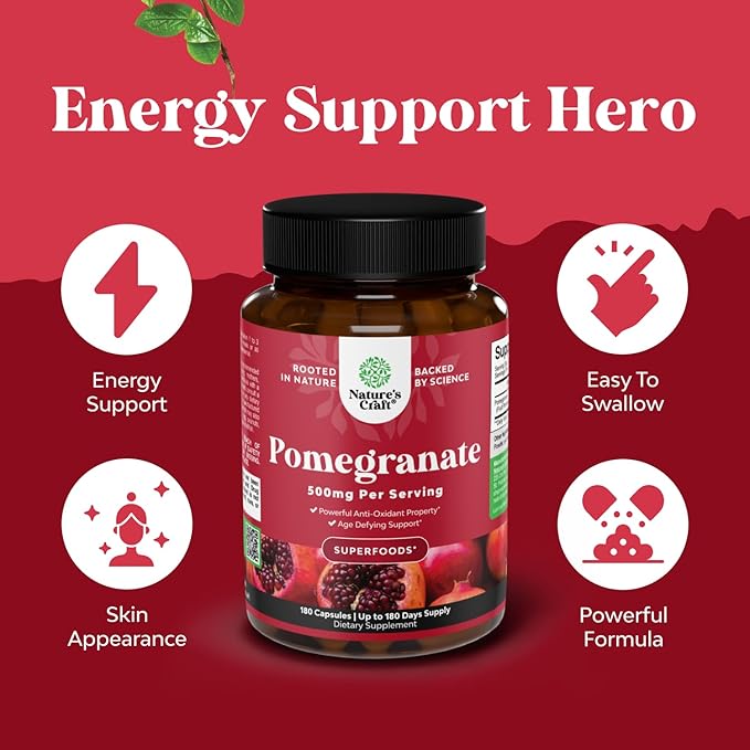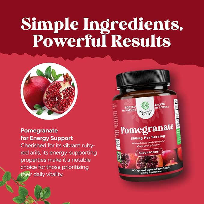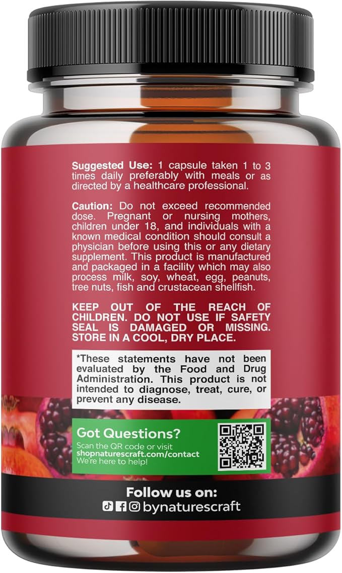 - Quality Assurance - Natures Craft is a trusted name in herbal supplements and we invite you to try our pomegranate supplement made with real fruit that offers countless benefits from head to toe