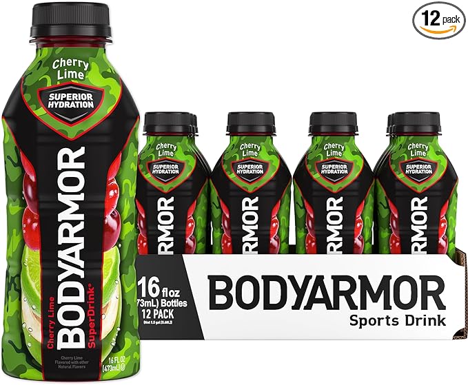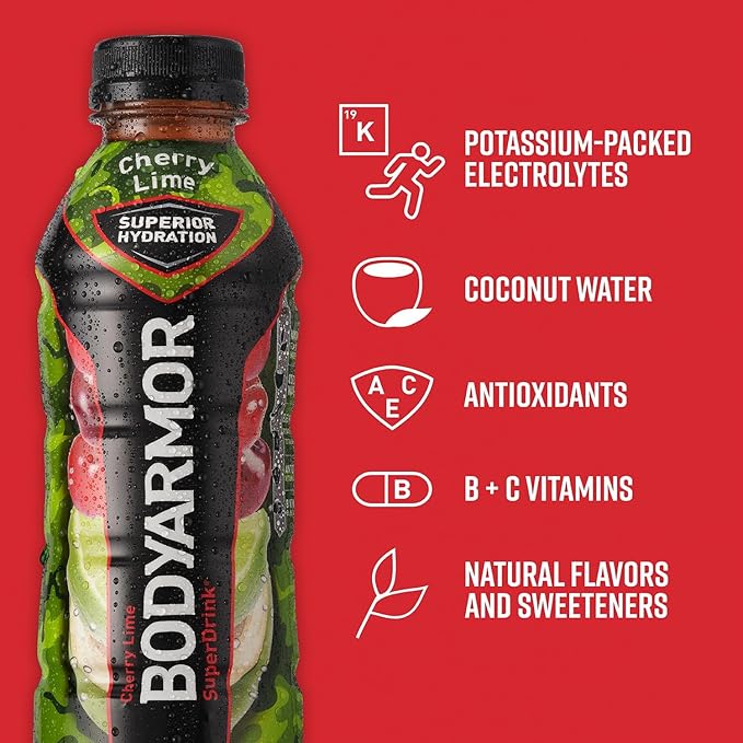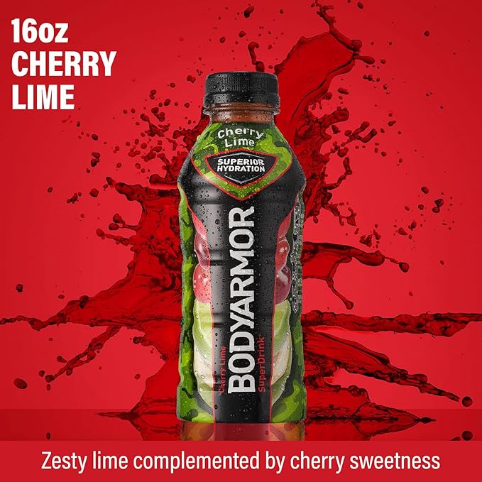 BODYARMOR Sports Drink Sports Beverage, Cherry Lime, Coconut Water Hydration, Natural Flavors With Vitamins, Potassium-Packed Electrolytes, Perfect For Athletes, 16 Fl Oz (Pack of 12)