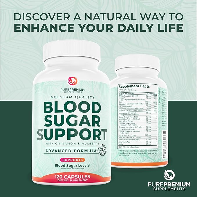 PurePremium Normal Blood Sugar Support Supplement - 20 Active Ingredients Complex to Support Blood Sugar Levels Already in The Normal Range - with Cinnamon, Bitter Melon, Chromium, Mulberry - 120ct
