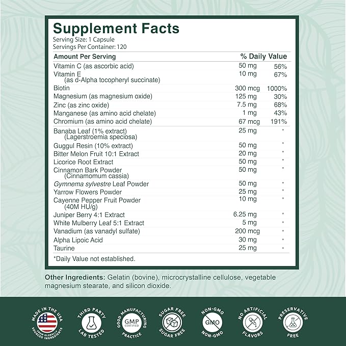 - 120 DAYS SUPPLY: With 120 easy-to-swallow capsules per bottle, this supplement offers a two-month supply, providing lasting support for your blood sugar and overall health with just one capsule a day.*
