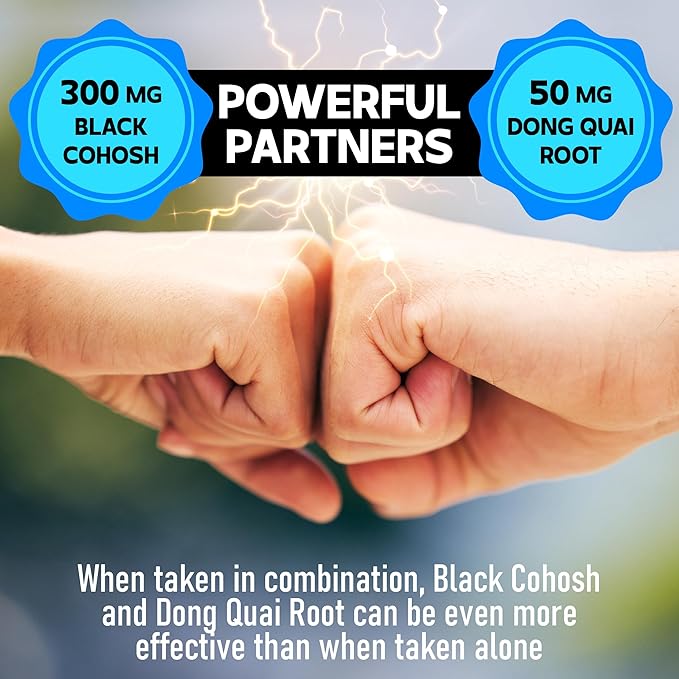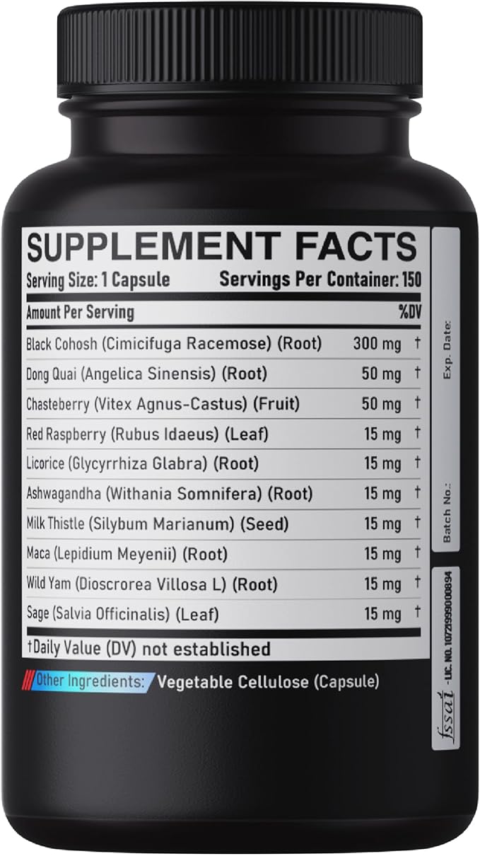 - 💚 Black Cohosh Organic blend is selected from 12 potent herb ingredients: Extracted Black Cohosh root powder, Dong Quai, Chasteberry, Red Raspberry, Licorice Root Extract, Ashwagandha, Milk Thistle, Maca Root, Wild Yam Root, Sage, Red Clover, and Black Pepper.