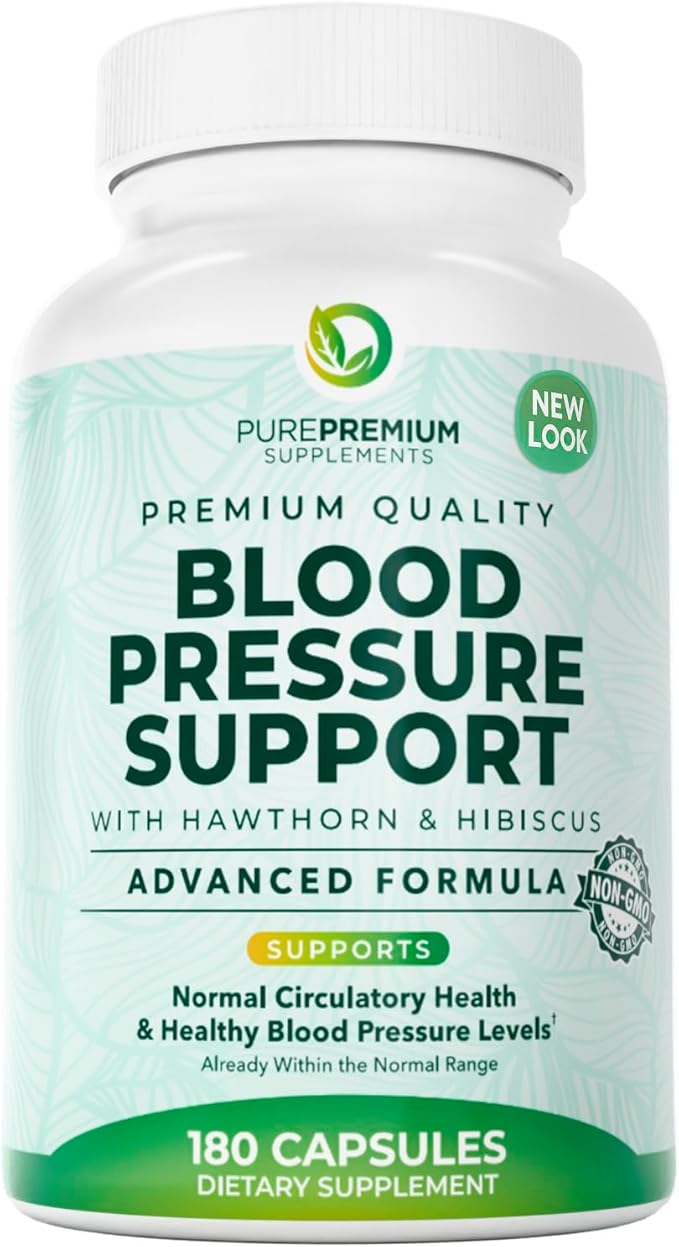 PurePremium Blood Pressure Supplements with Hawthorn Berry, Hibiscus, Garlic & Vitamin B12- Nitric Oxide Supplement for Normal Heart Health, Circulation Health & Blood Pressure Support - 180ct