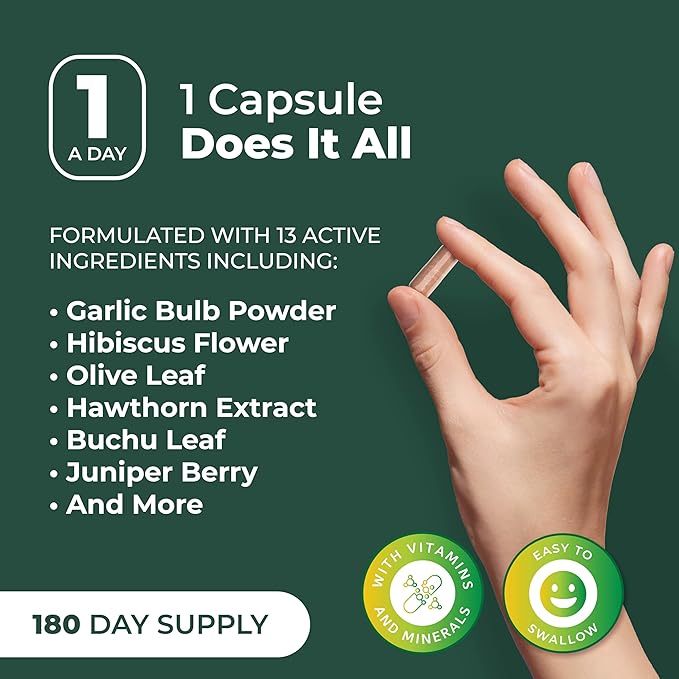 - ALL IN ONE FORMULA: Experience a blend of nutrients in our supplements, featuring, hawthorn berry, hibiscus, garlic extract, olive leaf, buchu leaf, uva ursi, juniper berry, green tea, vitamin C, niacin, vitamin B6, folate, and vitamin B12.*