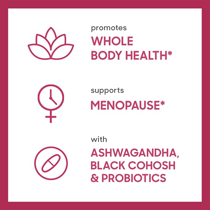 - PACKED WITH POTENCY: Includes ashwagandha, black cohosh, vitamin B12, calcium, magnesium and women's probiotics, along with high potency vitamin C, vitamin D and zinc supplement