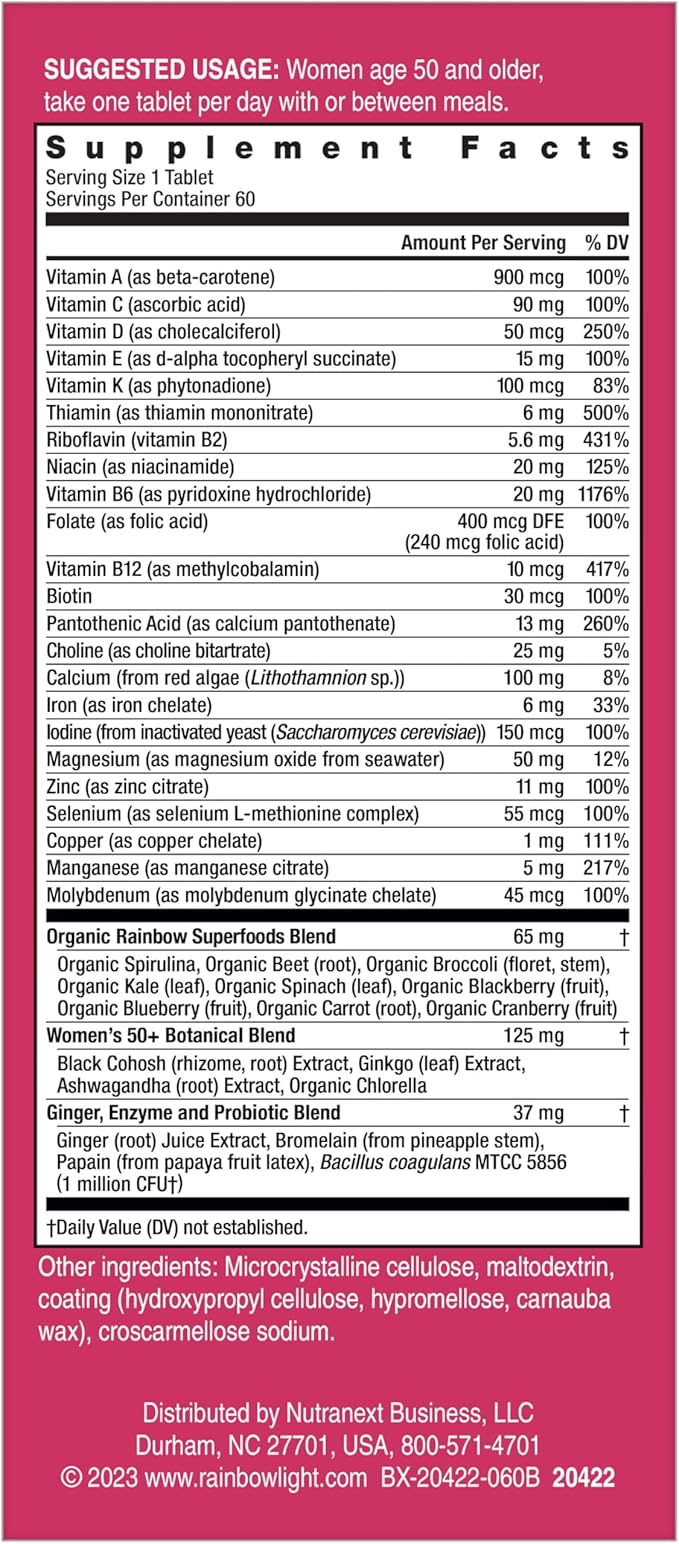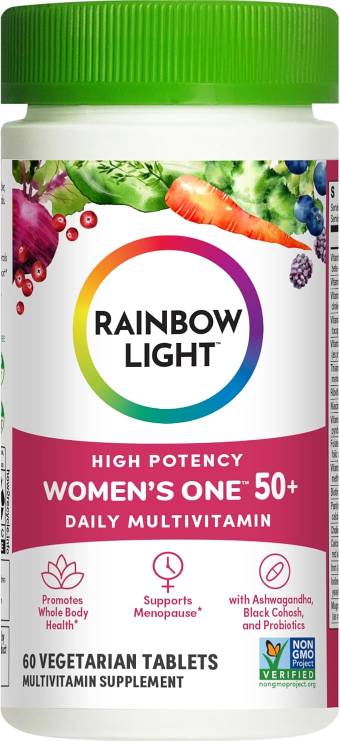 Rainbow Light Multivitamin for Women 50+, Vitamin C, D & Zinc, Probiotics, Women’s One 50+ Multivitamin Provides High Potency Immune Support, Non-GMO, Vegetarian, 60 Tablets