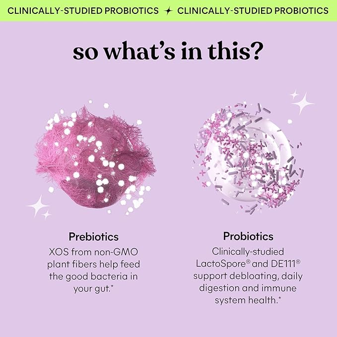 - DAILY GUT HEALTH: Feel your best after meals by reducing bloating and gas, aiding digestion and fueling a healthy gut microbiome with 2 clinically-studied probiotics & a powerful prebiotic.*