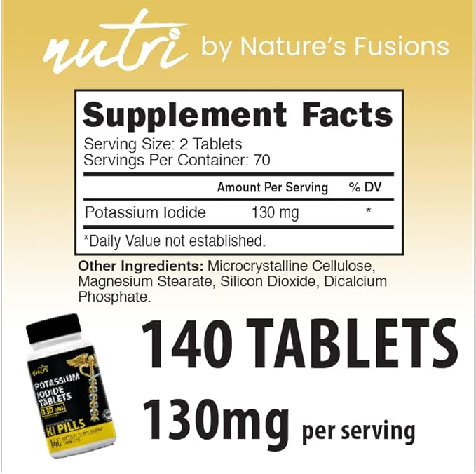 Nature's Fusions Potassium Iodide Tablets (Pack of 5) 130mg - 700 Tablets EXP 10/2032 - YODO Naciente - KI Pills - Yoduro de Potasio