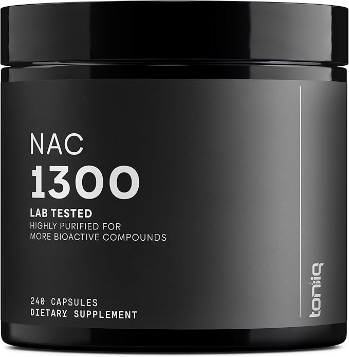 Toniiq 1300mg NAC - 4 Month Supply - Min. 98%+ Tested Purity - Ultra High Strength Bioavailable NAC Cysteine Supplement - 240 Vegetarian N Acetyl Cysteine Capsules -Lab Tested TQ