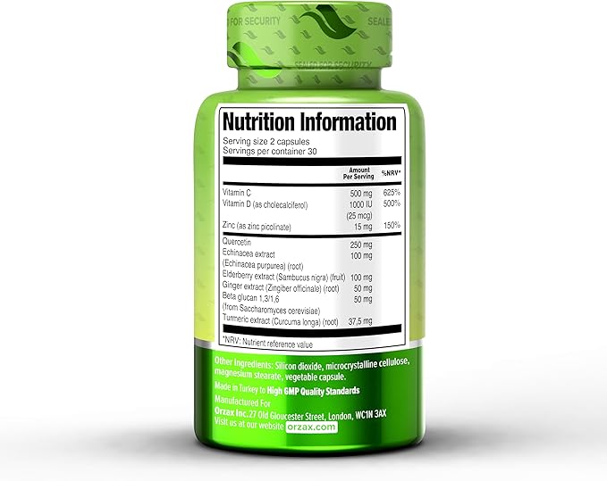 - Special Ingredients : ORZAX 9 in 1 Immune Defense Supplement High Strength Vitamin C & D with Zinc, Quercetin, Turmeric & Ginger, Echinacea Capsules - Herbal Defense for Immune System Support - 60 Veg Capsules ORZAX 9 in 1 Immune Defense Supplement High Strength Vitamin C & D with Zinc, Quercetin, Turmeric & Ginger, Echinacea Capsules - Herbal D… See more