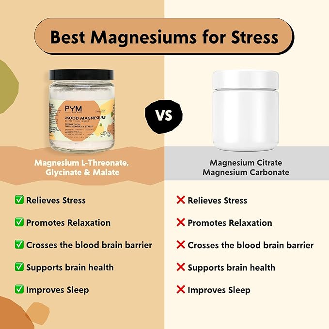 - Prepare Your Mind: PYM Mood Magnesium is formulated with a mindful blend of amino acids, magnesium, and vitamin B6 to fill your cup, support stress responses and help you sleep soundly.