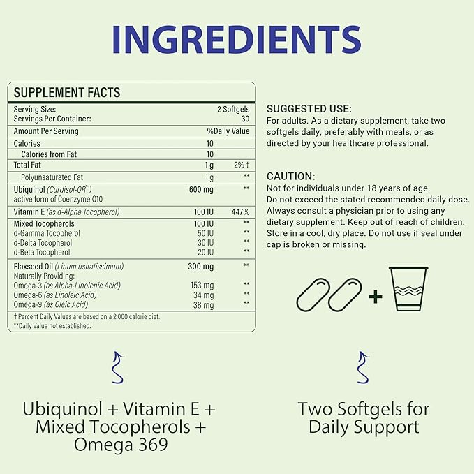 CoQ10 600mg Softgels | High Absorption CoQ10 Ubiquinol Supplement | Reduced Form Enhanced with Vitamin E & Omega 3 6 9 | Antioxidant Powerhouse Good for Health | 180 Soft